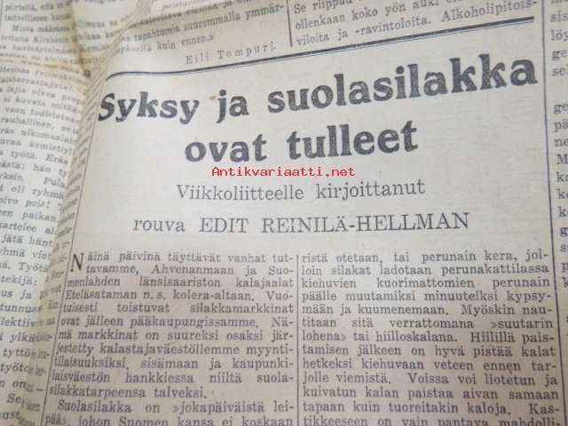 Helsingin Sanomat Viikkoliite 1934 nr 39, 30.9.1934, sis. mm. seur. artikkelit; Vaikutelmia Englannista kesäkuussa 1934, Pestuumarkkinat Lahdessa, Neuvostoteatteri ja -yleisö, Miss Europan Ester Toivosen kotikaupunki Hamina, Edit Reinilä-Hellman - Syksy ja suolasilakka ovat tulleetKauraryynit terveellinen ja halpahintainen ruoka-aine, lihan käyttö taloudessa, Felix - Kissalan pojat -sarjakuvat, ym.