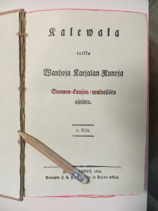 Kalevala 1835 2.painos. Ensimmäistä painosta painettiin 500 kappaletta.