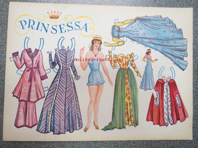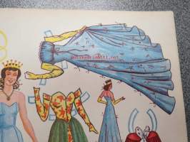 Prinsessa -kartongille painettu paperinukke vaatteineen, 1940 / -50-lukujen vaihteesta?