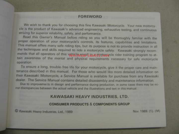 Kawasaki GPZ500S owner´s manual käyttöohjekirja