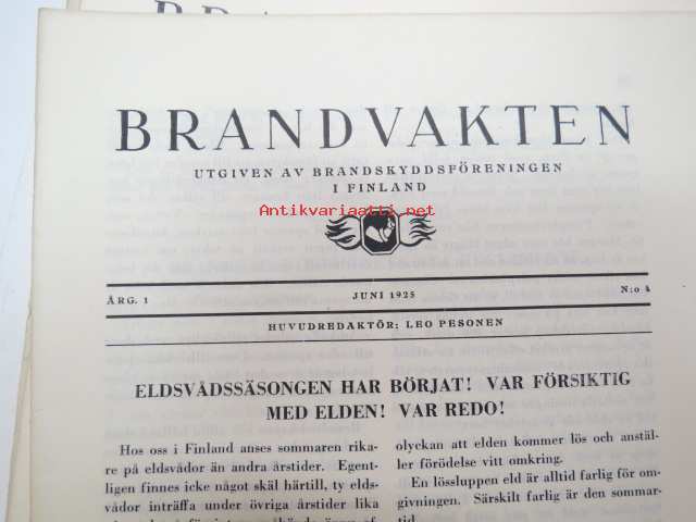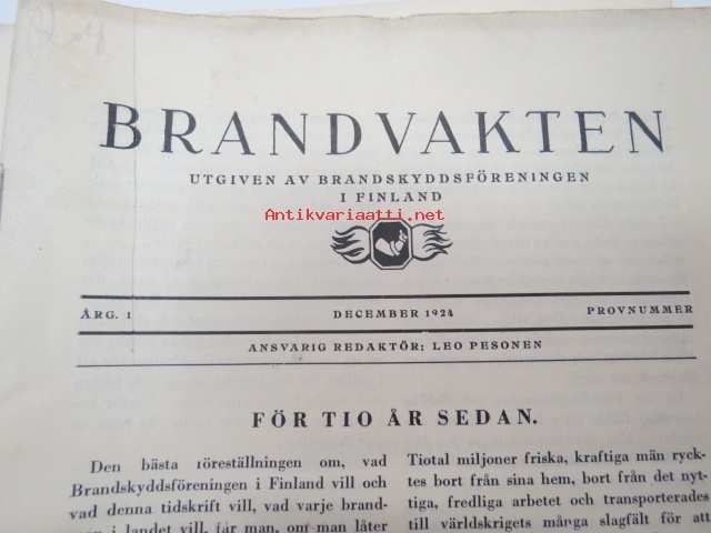 Brandvakten 1924 provnummer + 1925 nr 7, 5, 4, 3, 2 -palo-kunta-alan lehti, ruotsiksi