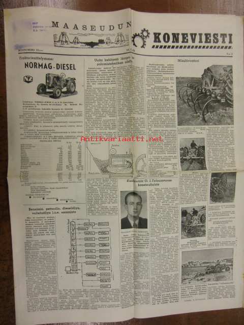 Maaseudun Koneviesti 1955 / 11. 14.6.1955 sis. mm. seur. artikkelit Vickers telatraktori.Normag diesel malli NG 22.Auran apulaitteista.David Brown 25 D diesel