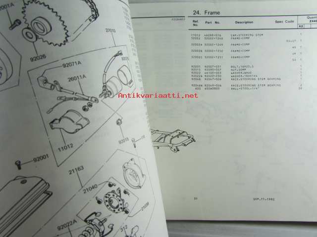 Kawasaki Z440-A2 for European market, motorcycle Parts Catalog - varaosaluettelo