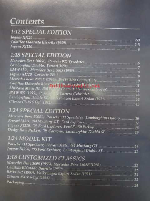 Maisto Classic Collection 1995 pienoismallit -luettelo
