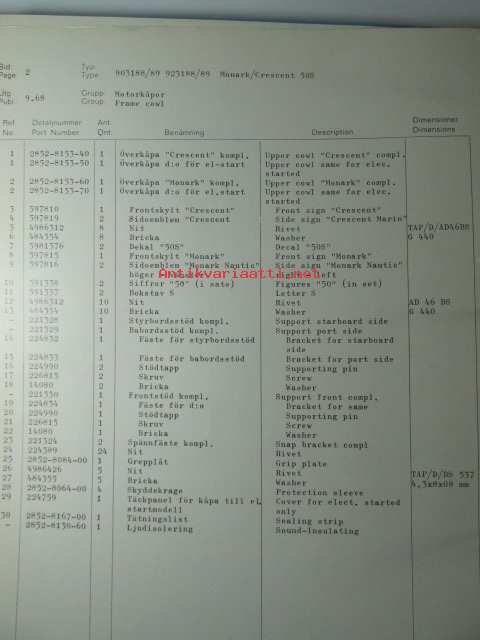 Monark-Crescent 50s 55 Outboardmotor - Reservdelslista/Varaosakirja ruotsiksi ja englanniksi. Irrallisia sivuja (37 s)