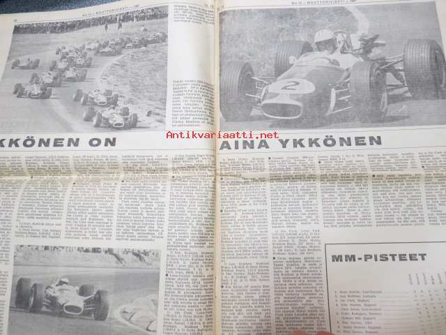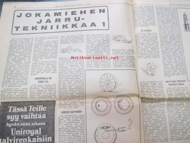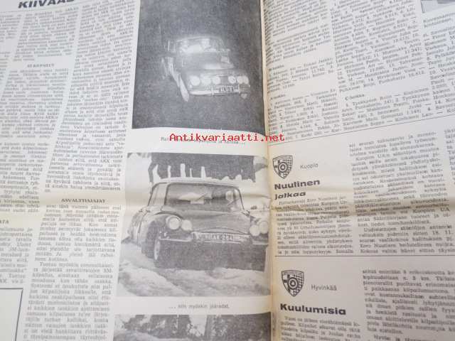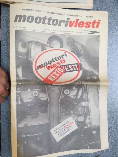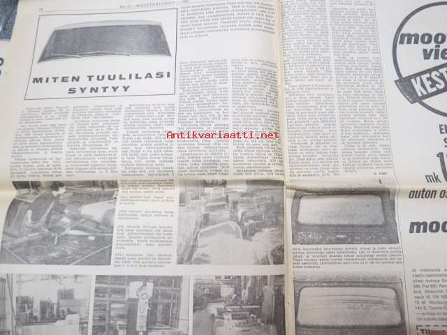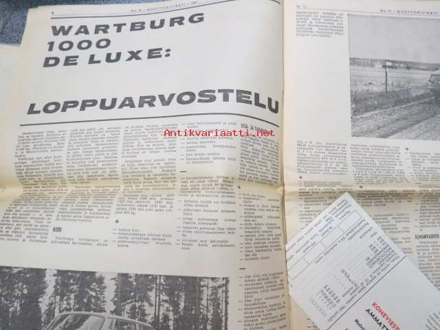 Moottoriviesti 1967 nr 12, sis. mm. seur. artikkelit / kuvat / mainokset; Kestotesti Wartburg 1000 loppuarvostelu, Kestotestissä Toyota Corolla NSU 110 SC, Koeajo Opel Rekord 1900 L, Saab 99, Earls Courtin perävaununäyttely, Jokamiehen jarrrutekniikka I, Miten tuulilasi syntyy, Formula I, ym.27 x 42 cm.