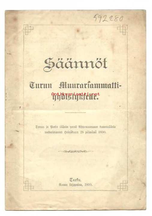Säännöt Turun Muurariammattiyhdistykselle 1890