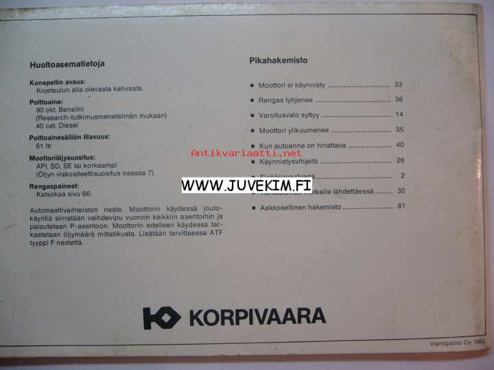 Autot, ajoneuvot - Korjaus- ja huoltokäsikirjat