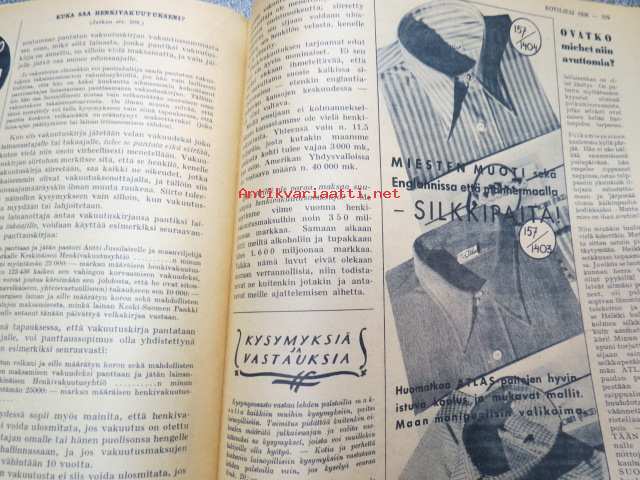 Kotiliesi 1938 nr 6, maaliskuu II, sis. mm. seur. artikkelit / kuvat / mainokset; Kansikuvitus Martta Wendelin, Kudos Oy Silo, Katriina-Kahvi, Diamond Oxygenol, Kasvatus alkaa kehdosta,Vanhan salin uusi kalusto, Emäntäkin istuu rakennuslautakunnassa, Miten hoitaisin lasteni hampaita, Fazer Tussin, Värikäs Kieku ja Kaiku ( piirt. Asmo Alho) , Havin Loistojauhe puhdistusaine, ym.