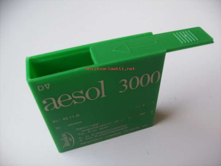 Aesol 3000 - tyhjä lääkepakkaus lääkerasia apteekki 7x7x2 cm muovia
