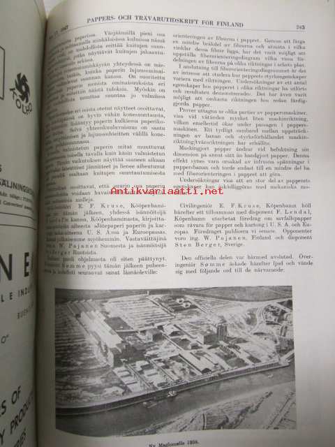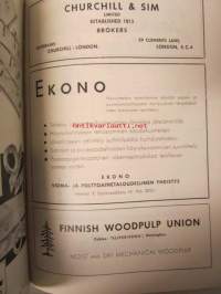 Suomen Paperi- ja Puutavaralehti / Pappers- och trävarutidskrift för Finland / The finnish paper and timber journal 1947, paperiteollisuuden ja puutavara-alan suomen-, ruotsin- ja englanninkielinen ammattilehti -sidottu vuosikerta -annual volume22 x 29 cm.