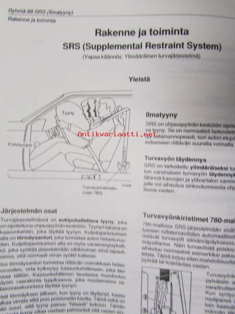 Volvo Huoltokäsikirja osa 8 (88), Vianetsintä-Korjaus-Huolto - SRS ("ilmatyyny") (Supplemental Restraint System) 700 1987-19.. Syyskuu 1989 TP 31403/1 SF