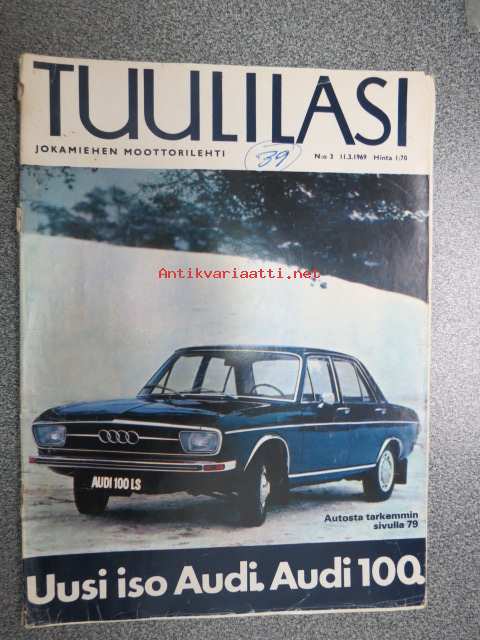 Tuulilasi 1969 nr 3, sis. mm. seur. artikkelit / kuvat / mainokset; Kansikuva Audi 100 LS, Gulf Extra Service, Automatkailu ulkomailla, Nikolajeffin Efta-auto Vauxhall, Ford Escort 1300 koeajo, Miten valitaan sopivimmat suvikumit, Vene vesille, Terhi, Suojatkaa autonne - älkää ruostetta, BMW 2002 / 2000 - tuulilasi tutustuu, Mistä matkailuperävaunuissa kannattaa maksaa, ym.21 x 29 cm.