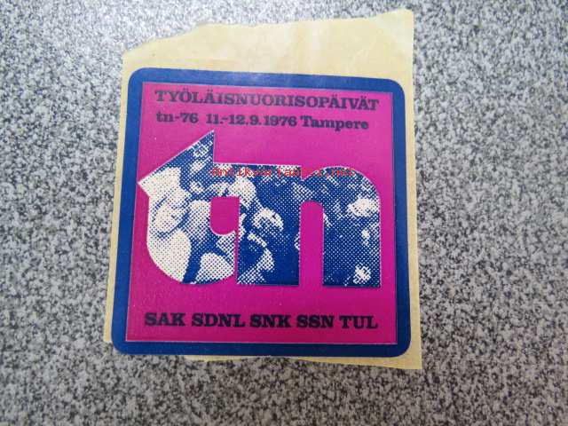 Työläisnuorisopäivät tn -76 11-12.9.1976 Tampere SAK, SDNL, SNK, SSN, TUL -tarra