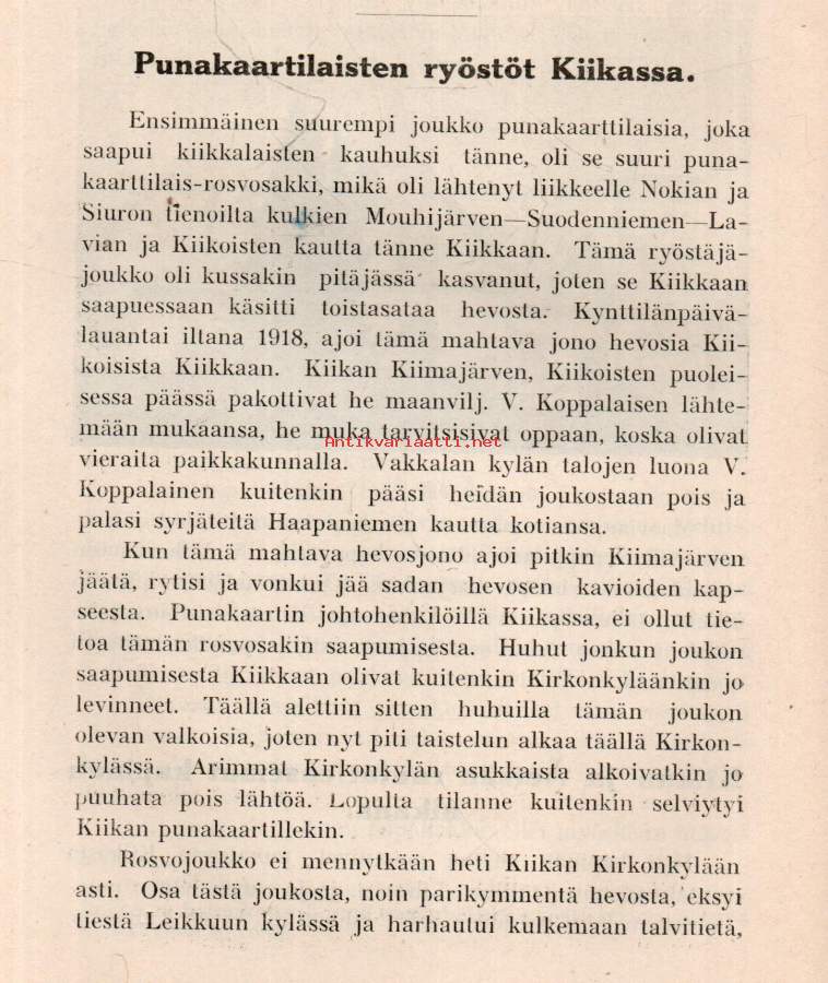 Kiikka kapina-aikana ja Kiikan suojeluskunnan vaiheet 1917-1927