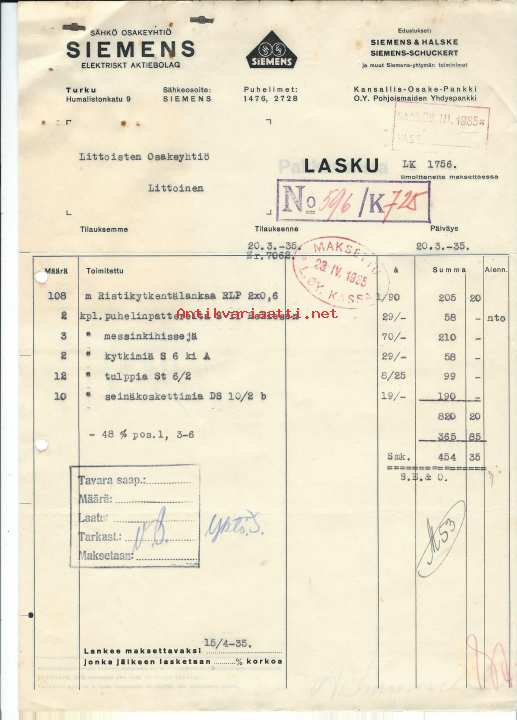 Siemens-Schuckert Werke G.m.b.H. Preisliste 5 Juni 1911 Elektrizitätszähler -sähkönkulutuksen mittauskojeet