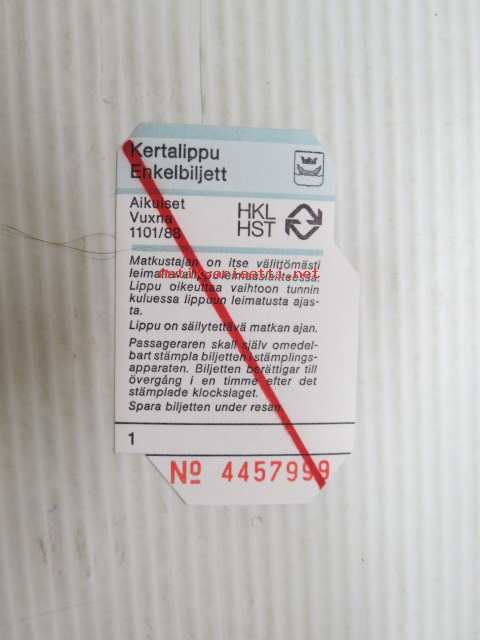 Helsinki / Liikennelaitos / HKL - HST / YTV - 1988 Kertalippu Aikuiset Punaraita nr 4457999 -matkalippu