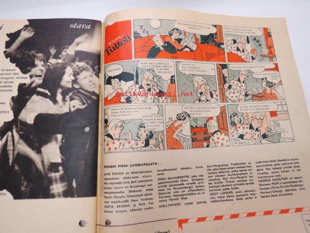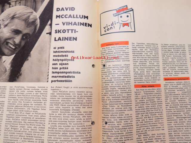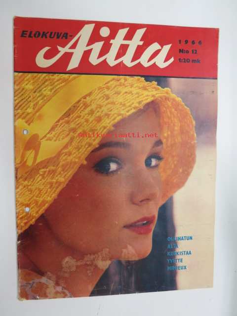 Elokuva-Aitta 1966 nr 12, sis. mm. seur. artikkelit / kuvat / mainokset; Kansikuva Yvette Mimieux, Siiri Angerkoski, Kaupunkien pääkadut sarja - Hämeenlinna - Reska (Raatihuoneenkatu), Liisa + Raila + Hilkka Ahlström, Mauno Kuusisto, David McCallum, Risto jarva, ym.21 x 29 cm.