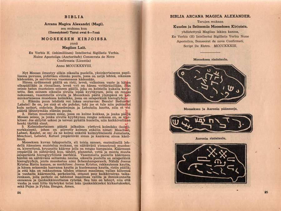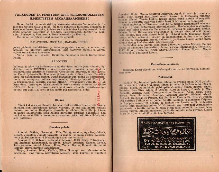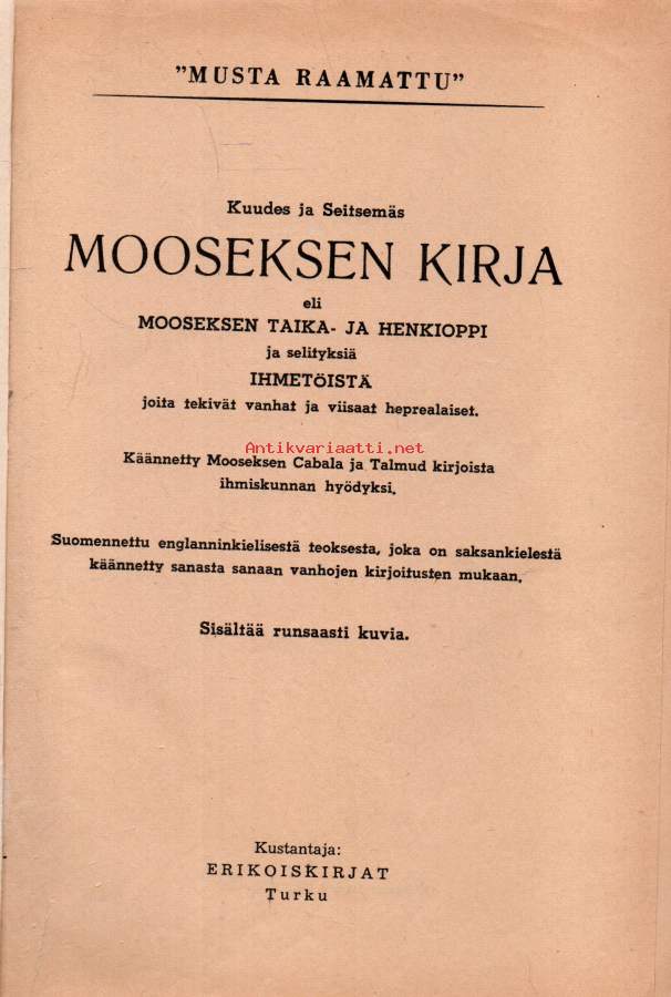 Musta Raamattu - Kuudes ja seitsemäs Mooseksen kirja eli Mooseksen taika- ja henkioppi ja selityksiä Ihmetöistä, joita tekivät vanhat ja viisaat heprealaiset.