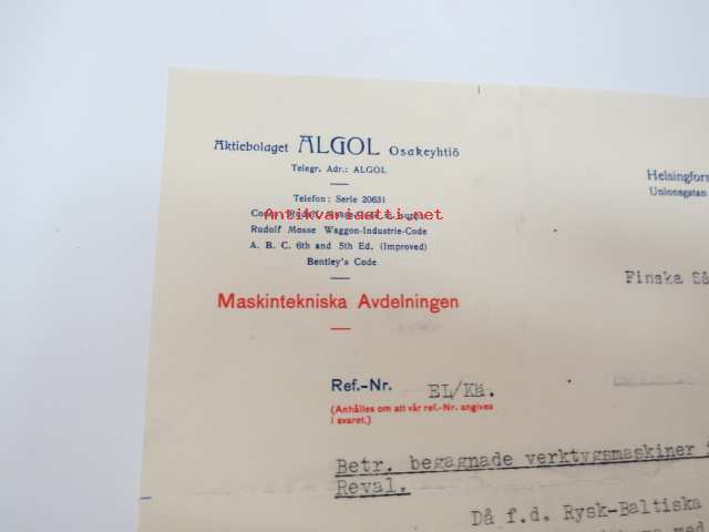 Ab Algol Oy, Helsingfors, 10.3.1931 -liikekirje -business letter