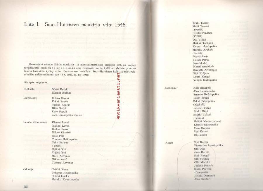 Liitteissä mm. Suur-Huittisten maakirja v. 1546, manttaaliluettelo v. 1639. Huittinen. Vampula, Keikyä, Punkalaidun, Kauvatsa