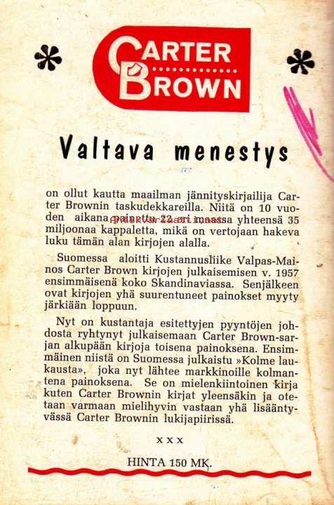 Carter Brown sarja N:o 1 - Kolme laukausta, 1962. 3. painos