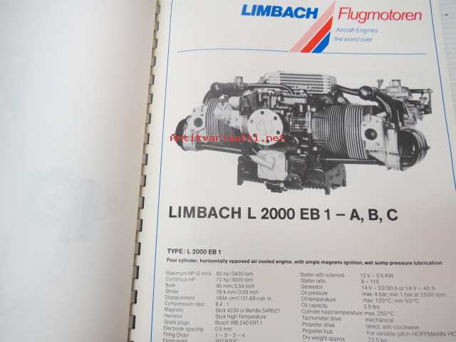 Limbach Flugmotoren -kansio, teknistä tietoa