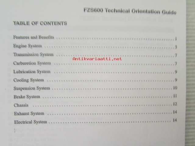 Yamaha FZS600 -Tekninen perehdyttämisopas