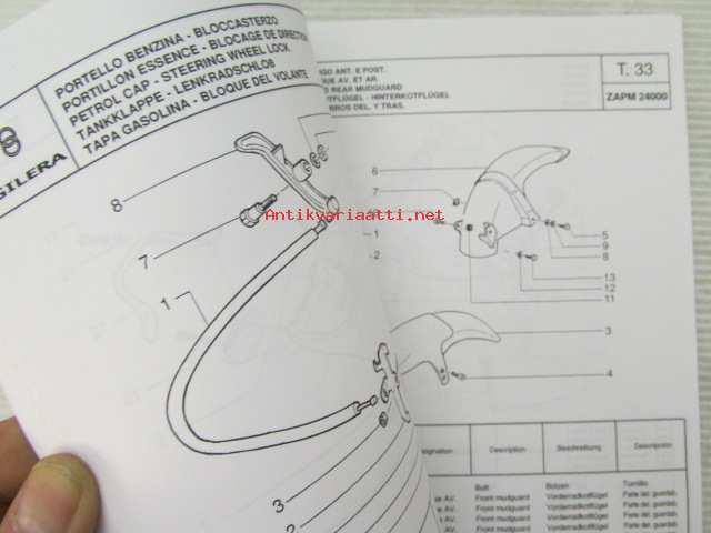 Gilera Typhoon XR50KAT Catalogue of Spare Parts 594223 -varaosaluettelo, katso kuvista mallimerkintä tarkemmin