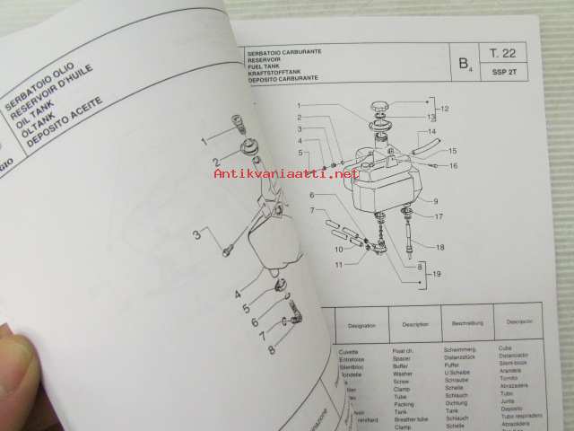 Piaggio Typhoon Catalogue of Spare Parts 405794 -varaosaluettelo, katso mallit kuvista tarkemmin.