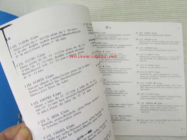 Piaggio Ciao P Mod. C7E (Ciclomotori Ciao) Catalogue of Spare Parts 594678 -varaosaluettelo, katso mallit kuvista tarkemmin.