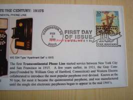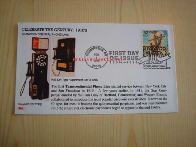 Transcontinental Phone Line, 1998, USA, ensipäiväkuori, FDC, hieno. Minulla on noin 1200 erilaista amerikkalaista ensipäiväkuorta 1920-luvulta 2000-luvulle, paljon eri aiheita, kysy jos haet jotakin tiettyä. Postitus Suomeen hyvin pakattuna muovikotelossa. Yhdellä postikululla tulee useampikin kuori samassa lähetyksessä. Voi maksaa Paypal tai mun pankin tilille Suomeen.