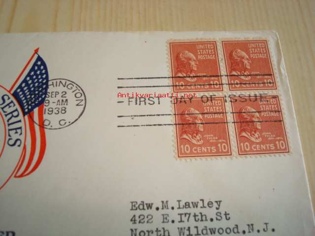 Presidentti John Tyler, 1938, USA ensipäiväkuori, FDC. Minulla on mm. noin 1200 erilaista amerikkalaista ensipäiväkuorta 1920-luvulta 2000-luvulle, kysy jos haet jotakin tiettyä. Postitus Suomeen hyvin pakattuna muovikotelossa. Yhdellä postikululla tulee useampikin kuori samassa lähetyksessä. Voi maksaa Paypal tai mun pankin tilille Suomeen. Luotettavaa kaupankäyntiä jo neljällä vuosikymmenellä sekä Suomessa että Ruotsissä ympäri maailmaa. Minulla oli pitkän aikaa antiikkiliike Tampereella ennen Ruotsiin muuttoani. Olen myös ollut sadoilla antiikki- ja keräilymessuilla myymässä ympäri Suomea.