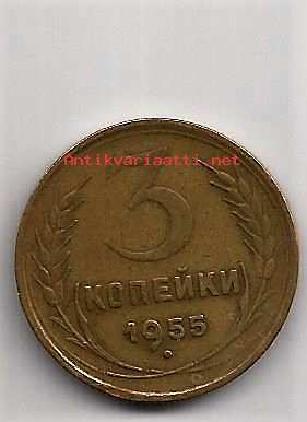 Neuvostoliitto Venäjä 3 kop 1955 kolikko