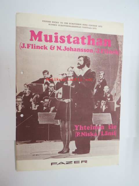 Muistathan - Finnish entry to the european Song Contest 1972, Suomen Eruroviisukarsinnan voittaja 1972 / Yhteinen tie -nuotit / notes