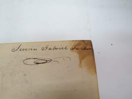 Försök till Lärobok i Gamla Historien för Lärdoms-Skolor 1847 / ...i Medeltidens historia 1841 / ... i Nyare Historien 1843 -yhteissidos -kirja kuulunut taiteilija Severin Gabriel Falkmanille, joka on etu- ja takakansiin / lehtiin hahmotellut piirroksia -history books, has belonged to an artist, who has drawn some sketches to some pages