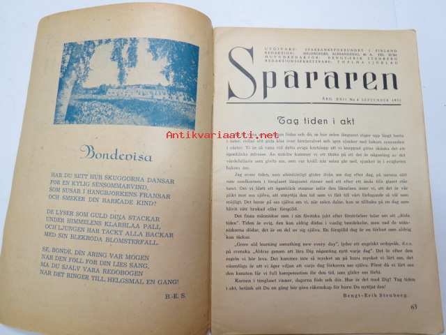 Spararen 1951 nr 4, Innehåller bl. a.; Pärmbild av Martta Wendelin, Fattigskolpojken som blev sagokung ( H.C. Andersen), Bombo och Bimbi - två malajbjörnar på äventyr, Tomten snurre Puck och älvan Frida - saga av Ingmar Nykvist, Svalboet - en kinesisk läckerhet, Tvånallars äventyr mm.