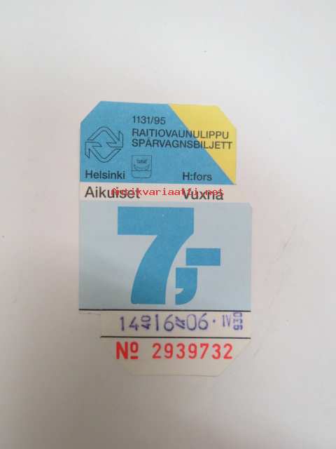 HKL/HST Helsinki 1131/95 Raitiovaunulippu - Spårvagnsbilljett nr 2939732 Aikuiset/Vuxna - matkalippu / travel ticket