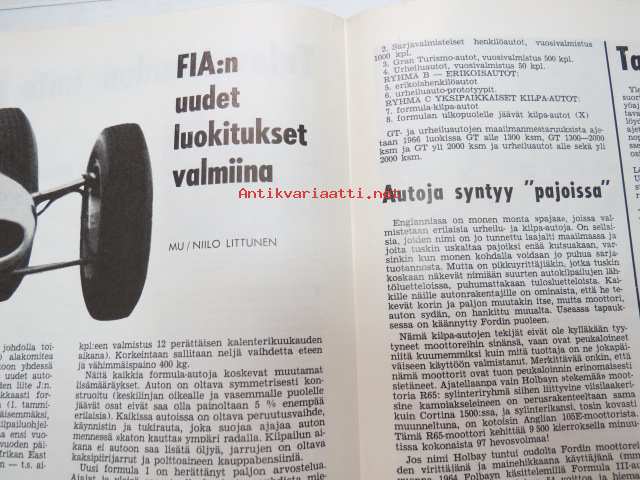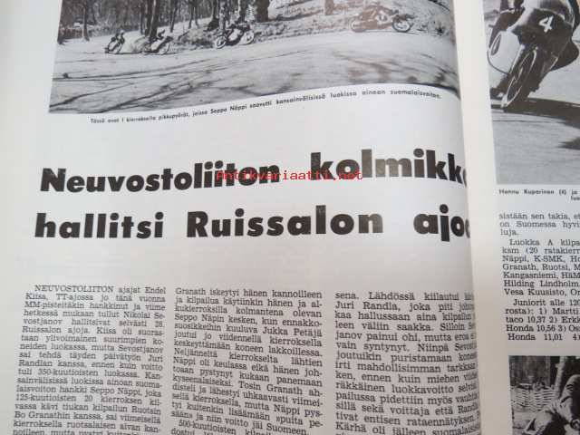 Moottoriurheilu 1965 nr 5, sis. mm. seuraavat artikkelit / kuvat, mainokset; Kansikuva Simca 1000, Jawa, Ruskeasanta, Neuvostoliiton kolmikko hallitsi Ruissalon
