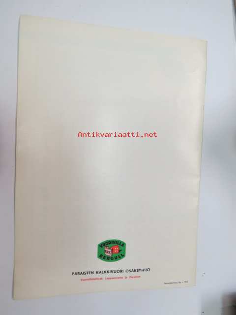 P&K Vuorivilla - Bergull - Tuoteluettelo ja hinnasto nr 16, 1.10.1965 / isolation material brochure