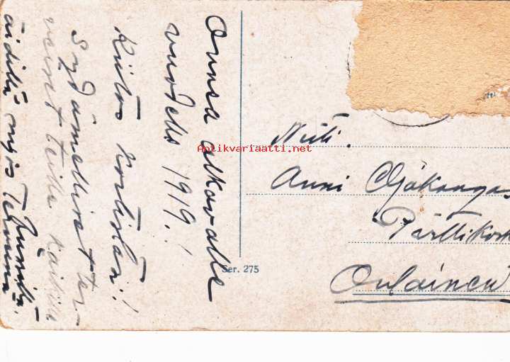 Vanha joulukortti - 1919. Ser 275. Koko 11,7 x 7 cm.