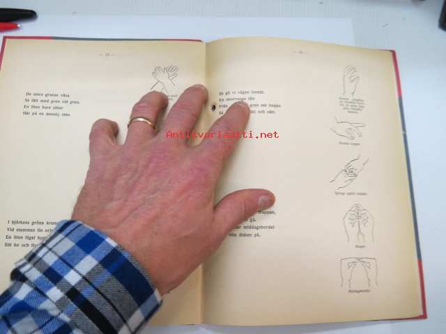 I lekens värld Fingerlekar för hem och barnträdgård av Karin Cedercreutz - tämä kirjapainon arkistoon jätetty kappale käytetty sensuuriviranomaisten hyväksyttävänä Painoasiain Ylihallituksessa, leimaus ja allekirjoitus -finger plays for children