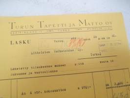 Turun Tapetti ja Matto Oy, Turku, 28.8.1952 -asiakirja / business document