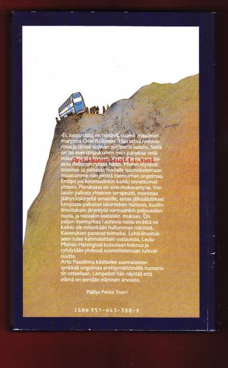 **Arto Paasilinna käsittelee suomalaisten synkkää ongelmaa erehtymättömällä humoristin otteellaan. Lempeästi hän näyttää että elämä on sentään elämisen arvoista.**