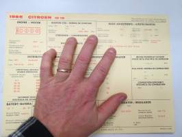 Citroën ID 19 1965 Sun Electric Corporation -säätöarvokortti, monikielinen -technical specifications, multilingual