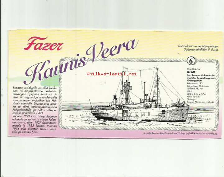 Kaunis Veera / Majakkalaiva Kemi - tuotepakkaus kansi makeiskääre tuote-etiketti 10x20 cm