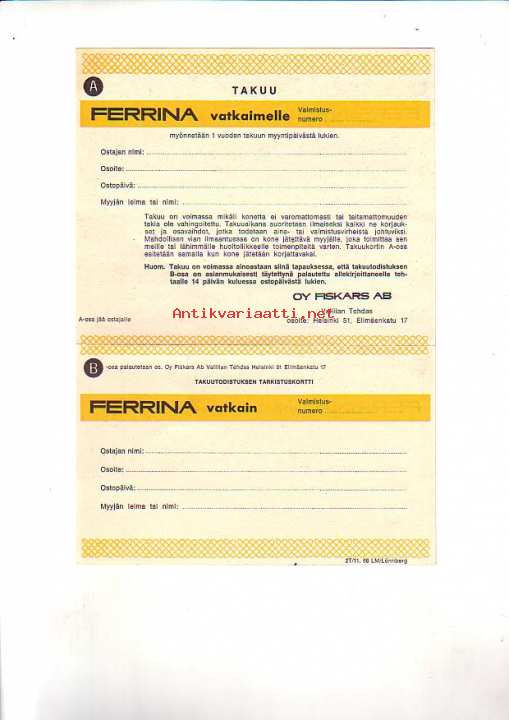 Takuukortti Ferrina-vatkaimelle (täyttämätön)