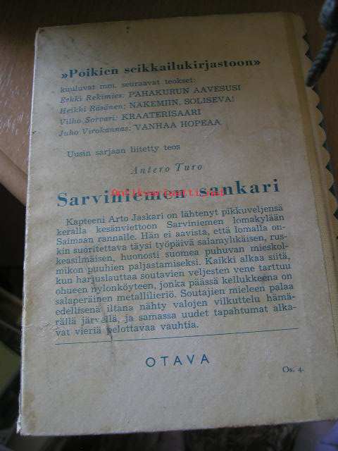 sarviniemen sankari.poikien seikkailikirjasto. vakitan tarjous helposti paketti. ..S ja M KOKO 19x36 x60 cm paino 35kg POSTIMAKSU 5e.