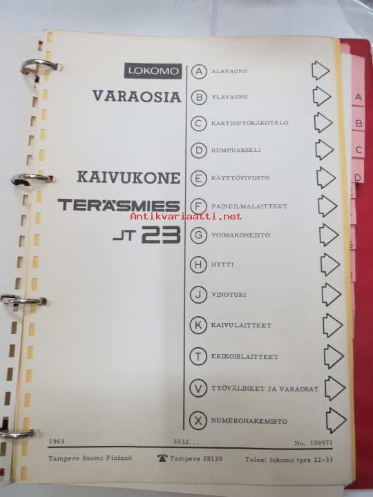Lokomo Teräsmies JT 23 kaivukone varaosaluettelo -excavator parts list