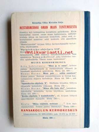 Perussiisti kirja, jonka sisäsivuilla ei ole merkintöjä. Kannessa ja suojalehdellä kansakoulun kirjaston leima ja merkinnät. Postimaksu 4€